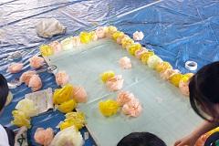 ☆校舎外の模擬店装飾も順調 ☆楽しい食空間を用意してあります