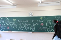 美術室には綺麗な黒板アート! 一見の価値あり。また、制作コーナーもあります。