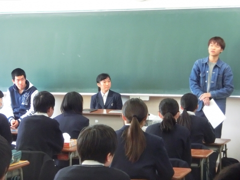 今春合格した卒業生52名に、1・2年生の各教室で、自身の高校生活や受験についての話をしてもらいました。