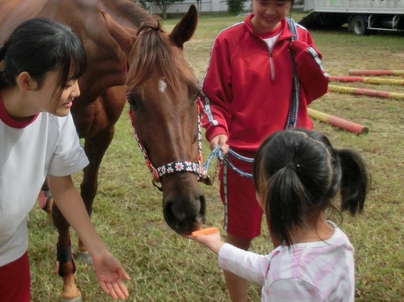練習は、月曜日と金曜日の週2回、石川県馬事公苑で馬に乗ります。水曜日は、学校でトレーニングを行っています。長期休暇の際は、馬房掃除、飼い付け、障害の横木のペンキ塗りなど作業も行います。目標は、春の北信越大会で団体の部で入賞し、全国大会に出場することです。今年は、コロナ拡散防止のためできませんでしたが、ホースセラピーなどのボランティアも行っています。