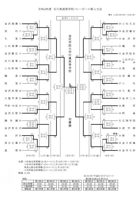 11月10日(水)~14日(日)の日程で令和3年度石川県高等学校新人バスケットボール大会が行われました。女子バスケットボール部は、1回戦は遊学館高校、2回戦は金沢高校と対戦し、結果は次のようになりました。
