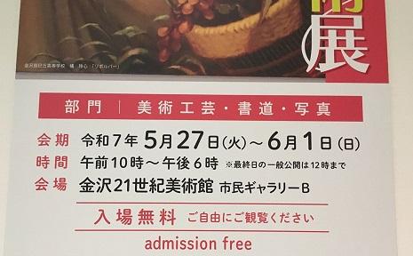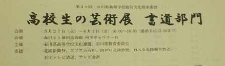石川県内の美術部・書道部・写真部の部員の力作が展示中。