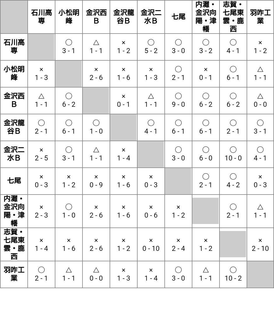 1本目:○1-0 2本目:△0-0 3本目:○3-0