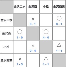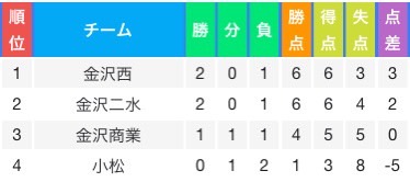金沢二水 2 (前半0-1 後半2-0) 1 金沢龍谷