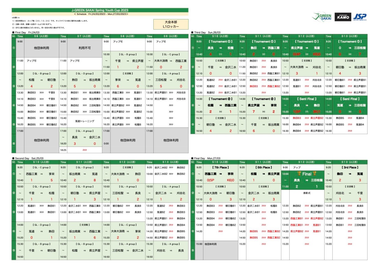3月24日(金)~27日(月)にかけて、大阪堺市にて開催された「J-GREEN SAKAI Spring Youth Cup 2023」に参加してきました。