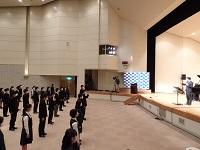 全日本合唱連盟が発表した「合唱活動におけるガイドライン」に則り、横1m、前後2mの距離をおく並びは、ホールにとっても初めてのことであり、舞台さんと生徒たちの手探りのステージ作りとなりました。