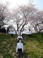 毎年春休み中に行っていたお花見ですが、今年はなかなか桜が咲かず、春休み最後の練習日となった6日土曜日に犀川河川敷へ行ってきました。満開とまではいきませんでしたがまあまあ花も開いていてたくさんの人がお花見に来ていました。若干人目を気にしつつも恒例の新入生歓迎用校歌を撮影。周りの方々から拍手をもらっていい気分になっていたところに「66期の合唱部OGです!」と先輩から声をかけられました。旦那様も二水出身で家族でお花見に来ていたところ、校歌が聞こえてきて懐かしくなって声をかけてくれたとのこと。素敵な出会いの記念に男声が宇宙戦艦ヤマトをアカペラで披露し、とても喜んでもらえました。新入生の皆さん、入学おめでとうございます。楽しいイベントや素敵な出会いが待っている合唱部にぜひ見学に来てください!