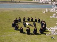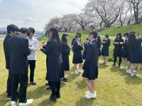 春休み中に犀川へお花見に行った折に、十分に間隔をあけてマスク着用で校歌を歌いました。散歩中の方から「素敵な歌声やと思ったら二水の合唱部かいね~。有名やもんね~頑張ってね~。」と声をかけていただきました。コロナ禍で逆境も少なくはありませんが、地域から応援される部活動であり続けるために、今後も全力で頑張ります!