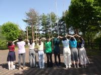 例年、新入生が入部した4月下旬に春合宿を行っていましたが、昨年度は休校で中止、今年度も予定はしながらも、コロナ禍で宿泊を伴うものは難しいということで、日帰りで1日白山青年の家で練習会を行ってきました。天気にも恵まれ、豊かな自然の中、レクリエーションやパート練習を通して学年を超えて親睦を深めていました。青年の家では、昼食時にはアクリル板設置の最大2人掛けのテーブルで準備や片付けも職員の方で行うなど、感染症対策にとても気を遣っていました。研修室には2酸化炭素濃度系も設置してあり、生徒も安心して間隔を保ちながら充実した活動ができました。帰り際にお礼の意味も込めて青年の家へ向かって校歌を歌いました。先がなかなか見通せない状況ではありますが、今できること目の前のことを1日1日しっかりと取り組んでいきたいと思います。
