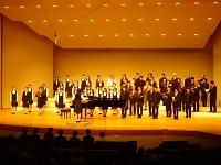 年末26日に石川県立音楽堂で開催されたコンサート「Entrance~和洋の扉~」に出演してきました。はじめに合唱の扉として児童合唱3団体のあとに本校単独で1曲演奏し、その後は金沢桜丘高校箏曲部や釣谷雅楽房社中、杵望会による邦楽の演奏を聞いた後、最後に総勢150名以上で日本民謡による吹奏楽と合唱・箏合奏のための俗謡五景を演奏しました。全国大会常連の金沢桜丘高校吹奏楽部の迫力ある演奏はもちろんのこと、今まで一緒に演奏する機会がほとんどなかった箏やお囃子の音色に感銘を受けながら壮大なサウンドに酔いしれることができました。各方面からたくさんの刺激をいただいたので、今後のアンサンブルコンテストや定期演奏会に生かしていきたいと思います。