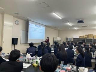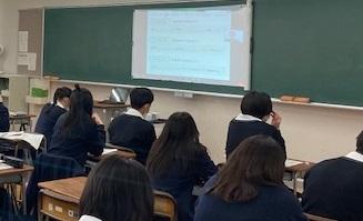 2年US(総合的な探究の時間)では、課題解決力や創造力を育成するために、中小機構のサポートのもと年間を通してビジネスプランづくりを実施しています。その一環として、起業家がどのような思いでどのような挑戦をしているのかを学ぶことを目的として今回の特別講義が実施されました。