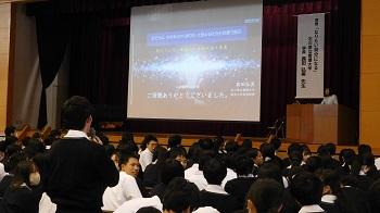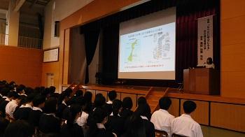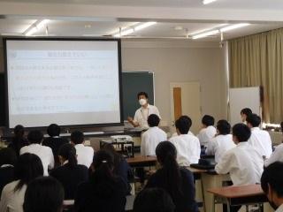 開講式後すぐに「課題探究の意義とテーマ設定について」石川県立大学 中谷内修助教から講義を受けました。
