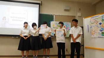 今年は1・2年の希望生徒24名が参加し、国内の大学に学ぶ外国人学生4名を迎え、身近なテーマからより大きな社会的なテーマまで、英語でディスカッションやプレゼンテーションを行いました。