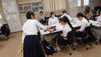 ふれあい海洋センター前の海に入って、貝やウニ、カニなどを生物を採集した後、これらの海洋生物を対象としてグループごとに課題研究に取り組みました。自然に恵まれた奥能登で、自然に対する科学的なものの見方・考え方を育み、環境と生命の大切さを理解することができました。