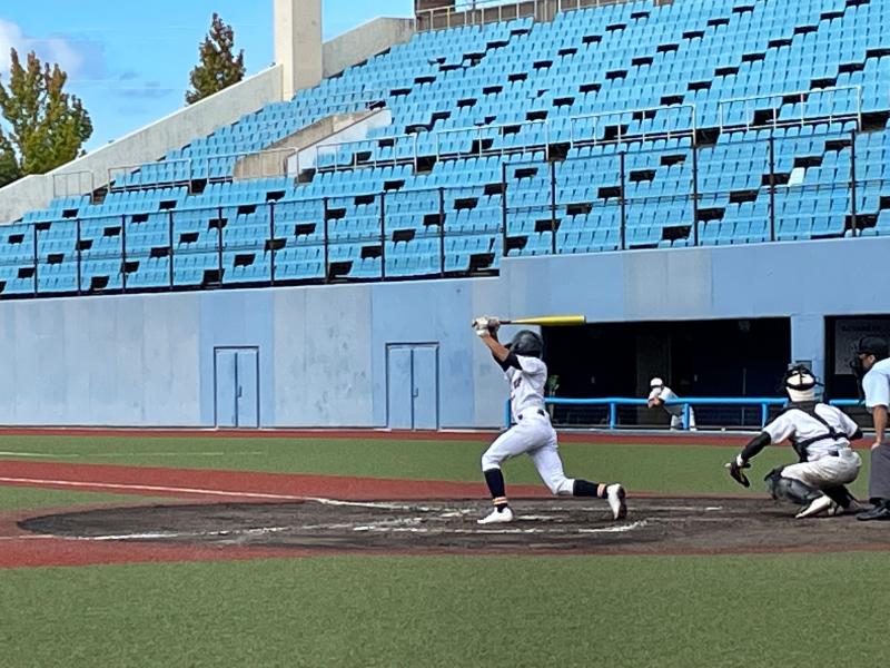 一方遊学館打線は、3回4回5回に打線が集中し、甘く入ったボールを確実に仕留められ単打と長打が重なった結果8点の失点を許してしまいました。6回以降は遊学打線を2安打に抑え、攻撃の流れをシャットアウトするも、チャンスでの一打がなかなか出ず、2回以降のスコアには0が並ぶ結果となりました。9回裏の攻撃では意地を見せた主将の一打で0死1、3塁で粘りを見せたが、その後の打線が繋がらず無得点で試合終了となりました。