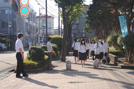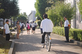 今後も、生徒が自転車マナーを遵守し、交通安全に配慮するとともに、もっと元気よく挨拶できるよう指導していきたいと思います。