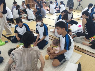 はじめはぎこちなかった生徒でしたが、次第に赤ちゃんを抱っこしたりして、とてもいい笑顔を見せていました。