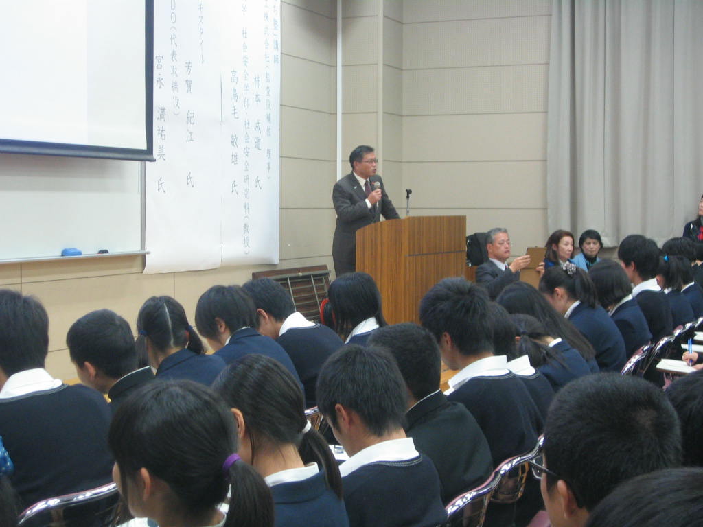 先輩を見習い、将来、地域や国家、国際社会に貢献する職業人を目指してほしいと思います。
