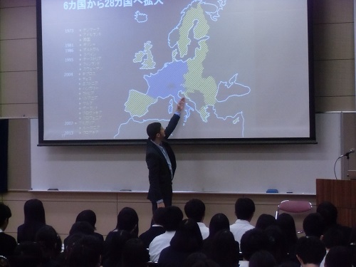 講師の皆様の熱心な話しぶりからは、自分の会社に誇りを持ち、仕事を愛し、社会貢献への自信を持つ様子が伝わってきました。アメリカやイギリスで海外勤務する二水の卒業生たちのエピソードを披露してくださる会社もあり、生徒たちは熱心に聞き入っていました。