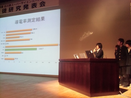 12月13日(金)に「石川県スーパーサイエンスハイスクール生徒研究発表会(主催:石川県教育委員会)」が文教会館にて行われました。県内から5校(泉丘・小松・七尾・桜丘・二水)が参加し、数学や理科に関する研究の成果を発表し合いました。本校と桜丘は正式にはSSHのメンバーではありませんが、取り組んだ研究を立派な態度で発表していました。