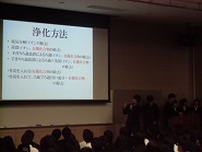 本校からは「汚水の浄化」班が壇上での口頭発表とポスター発表、「数学の問題解決法」班と「植物ホルモンエチレンの研究」班がポスター発表を行いました。どの班も積極的に堂々と発表しており、また、質疑応答で活発に意見を交わしながら、更に知識を深め、他校の生徒と交流する良い機会となりました。
