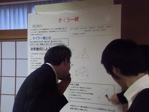 数学班は 「ゲーム理論」「オイラー線」 、生物班は 「ミカヅキモの光に対する反応について」 、物理班は 「ペルチェ素子の性能」 の研究成果を他校生徒に対してポスター発表しました。