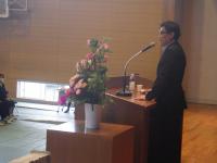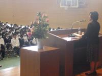 講演のあとご講演に感謝し、本校生徒代表小林美衣奈さんより、永田先生に花束の贈呈がありました。