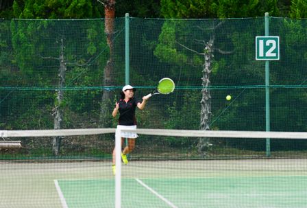 (女子テニス部 エースの藤木選手 個人戦では第1シード!)