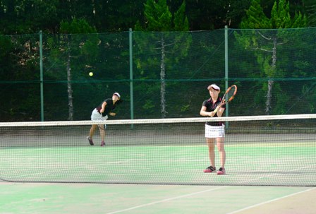 (女子テニス部 ダブルス1ペア 緊張の団体デビュー、ガンバレ!)