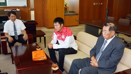 リオ五輪ボート競技に出場した本校OBの中野紘志選手がお父様とともに来校され、校長室にてリオ五輪の印象や今後の抱負、本校生徒に期待することなどお話しくださいました。
