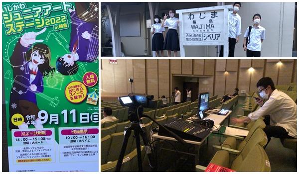 9月11日、輪島市文化会館で行われた「いしかわジュニアアートステージ2022 in 輪島」の司会と撮影に、1年生部員4名が参加しました。石川県文化振興課が開催する行事で、ステージでは和太鼓、筝曲、三味線、民謡、ピアノで全国トップレベルで活躍する県内小中高生の発表が行われました。