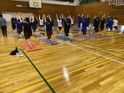 トレーナーに来ていただき、ヨガトレーニングをしているときの様子。
