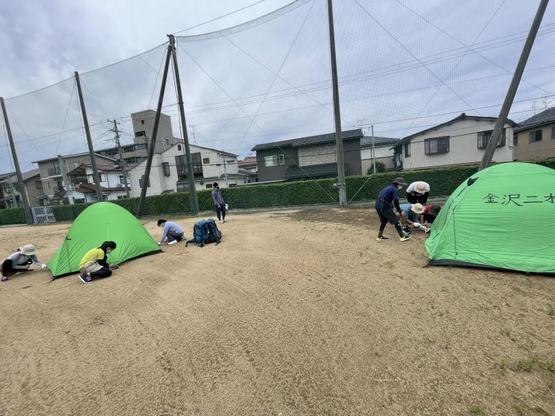 テント設営練習 インターハイ看板 福井駅前にて