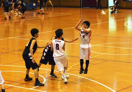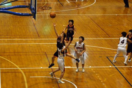 (第4Q : 3年生濱塚選手(9)の3Pシュート)