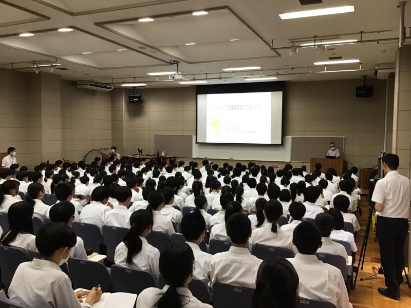 文理選択に向けて、各コースの紹介や選択科目について説明をしました。