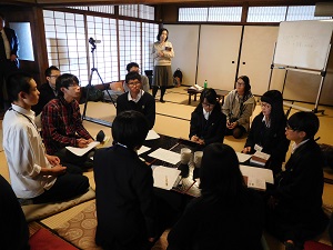 3月30日(木) 哲学の講義を終えて、宿舎に戻り、夕食後、京都大学で学ぶ先輩達をお招きして、京都大学での生活や合格に向けての学習方法などを話していただきました。
