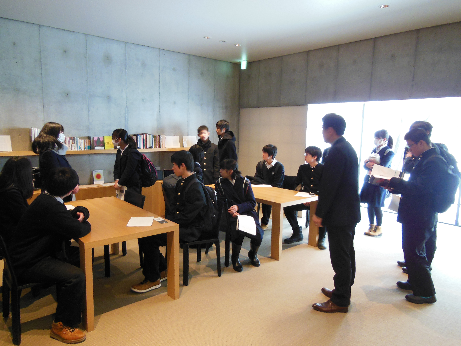 2月10日(土)午後、総合的な学習の時間を通じて郷土の哲学者に興味を持った1年生20名が、金沢市本多町の「鈴木大拙館」を訪問し、金沢市生まれで世界的な仏教哲学者・鈴木大拙の生い立ちとその功績に触れました。