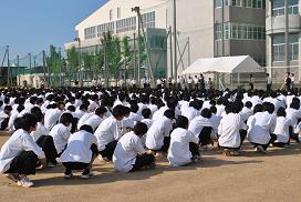 9月7日(金)15:20より避難訓練を実施しました。本校1階食堂パルから出火したという想定のもと、生徒・職員は避難経路に従って運動場へ避難し、点呼完了までにかかった時間は8分00秒74で、おおむね良好という消防の方の講評をいただきました。また、避難の際には自助・共助・公助の3つのポイントを忘れずに行動するようお話がありました。その後3年生は起震車体験、2年生は避難梯子を使った避難、1年生は消火器を使った消火訓練を行い、どの学年も代表者を中心に積極的に活動に取り組みました。実施訓練の後、各教室で担任の先生から、日頃より災害に備えておくことの大切さを伝え、生徒1人1人にアパ社長カレー・ラーメンを配布しました。本校OBで46期生のアパホテル株式会社専務、元谷拓様より防災備蓄用として寄贈していただいたものです。このことは本校HP(学校行事6月11日)にも掲載してあります。