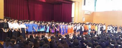 ☆講堂に並ぶ、本校運動部・文化部の面々