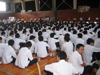 今回は1階食堂における出火を想定して訓練を実施しました。職員・生徒ともに、被害を最小限に食い止めるために、真剣に避難行動を取りました。体育館までの避難は迅速に行うことができましたが、体育館での整列・点呼に時間がかかり、10分3秒で避難を完了しました。