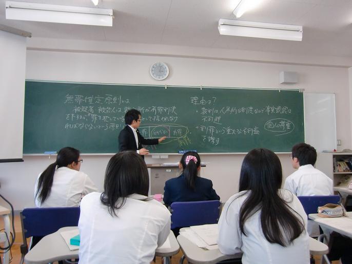 8月3日に行われる全国高校生模擬裁判選手権中部北陸大会に出場します。これにともない、人文科学コースではオリエンテーションを行い、外部講師をお招きし、刑事裁判の意義と目的について学びました。今後は、本校OBの弁護士の方々のご指導を受け、より実践的な授業を展開し、6月下旬には、金沢大学法科大学院の模擬法廷を借りて大会シミュレーションを行う予定です。
