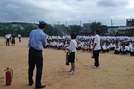 校長先生からは「グランドに出るまでは早かったが、その後の行動を見るとまだ改善の余地がある。」また、消防署の方からは「避難は予想以上に早くできた。火災が発生したらまず先生に伝え、その指示に従って行動してほしい。また、皆さんの家庭や地域における役割を考えると、高齢者の避難にも配慮することが期待される。」という講評をいただきました。