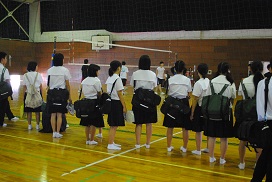 〈バレーボール部見学の様子・・・高校の部活動はとても迫力があります〉