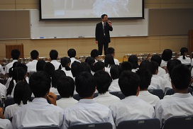 駿台予備学校 斉藤氏による進路講話では、「大学入試の最前線」、「入試の基礎知識」、「第一志望合格にむけて」という3つの柱で貴重なお話しをして頂きました。