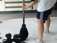 普段の臨書作品とは違い、巨大なサイズ(3m×6m)の紙に