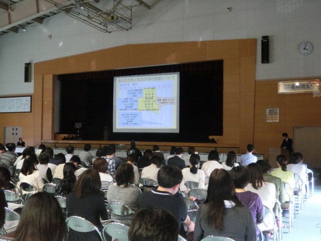 などの熱い応援のメッセージに、生徒たちもメモを取りながら真剣に聴いていました。