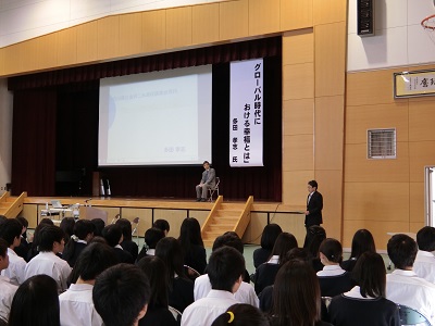 「寛容・不寛容・信頼」のテーマで講義を受けました。生徒達は課題として、先生の著書を読んできており、メモをとりながら熱心に聞き入っていました。