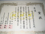 写真は、石川県コンクールでいただいた楯と賞状です。