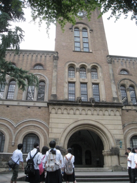 翌8月10日(土)、朝から暑い中、加賀藩ゆかりの‘赤門’をくぐり、いよいよ東京大学の見学です。グループは、東大のボランティア4名の学生さんによる‘キャンパスツアー(2隊)’と、本校卒業生1名による‘先輩と回るツアー(1隊)’の計3隊で回りました。