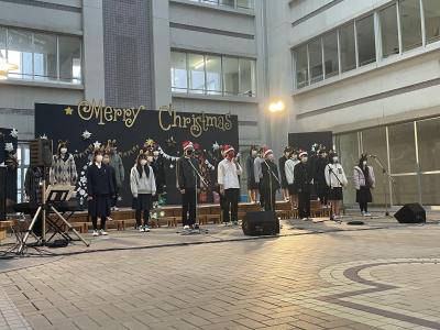 クリスマスコンサートは、「学校全体でクリスマスの雰囲気を味わいたい!」と生徒会の子供たちが企画をし、お昼休みの15分間を利用して行っております。